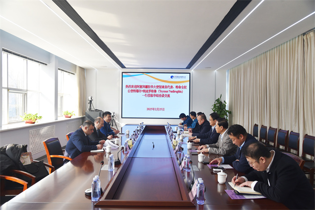 2月25日,阿塞拜疆共和國駐華大使館商務(wù)代表、特命全權(quán)公使特穆爾·納迪羅格魯,阿塞拜疆共和國駐華大使館商務(wù)代表、顧問伊和·阿塔里扎得一行到訪公司,就拓展合作領(lǐng)域進行洽談交流。中國國際經(jīng)濟合作學會副會長、國際投資合作委員會主任王緯緯,中經(jīng)聯(lián)合商貿(mào)總經(jīng)理黃文廣,中經(jīng)聯(lián)合商貿(mào)副總經(jīng)理孝金龍參加交流。公司黨委書記、董事長盛守祥,黨委委員、副總經(jīng)理孫中然,華紡國際分公司總經(jīng)理石魯美接待。